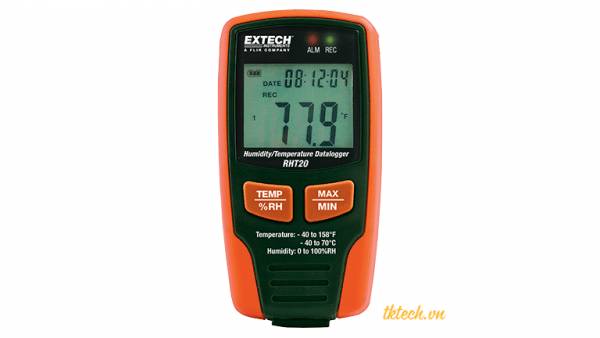 - Nhiệt ẩm kế tự ghi Extech RHT20 có phạm vi đo nhiệt độ rộng từ -40 đến 700C, với độ phân giải cực cao 0.1o