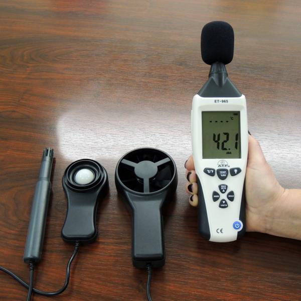 Flus ET-965 là dòng máy đo môi trường đa chức năng 5 trong 1 được thiết kế để kết hợp các chức năng của máy đo độ ồn âm thanh, máy đo ánh sáng, máy đo độ ẩm, máy đo nhiệt độ và đo tốc độ gió. Thiết bị lý tưởng cho các ứng dụng thực tế khác nhau trong sử dụng chuyên nghiệp và gia đình, chẳng hạn như giám sát và thu thập dữ liệu về môi trường ngoài trời (nhiệt độ, độ ẩm, ánh sáng mặt trời, tốc độ gió, v.v.) hoặc kiểm tra mức độ tiếng ồn và ánh sáng để tuân thủ sức khỏe và an toàn trong nhà máy, trường học , văn phòng, sân bay, v.v.
